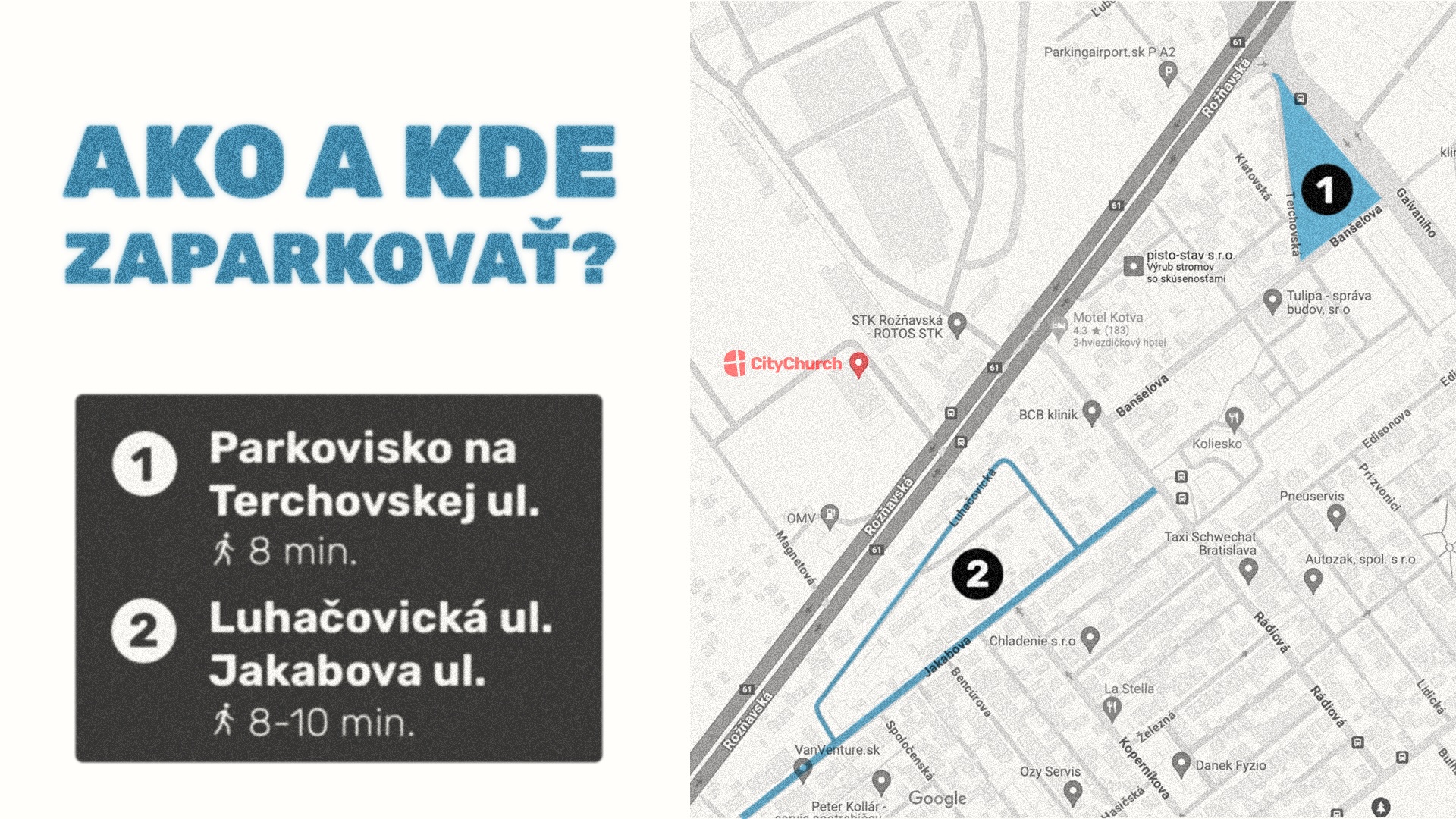 Parkovanie priamo pri budove je obmedzené na 40 miest! V prípade naplnenia kapacity parkoviska použite alternatívne možnosti (viď link pod textom).